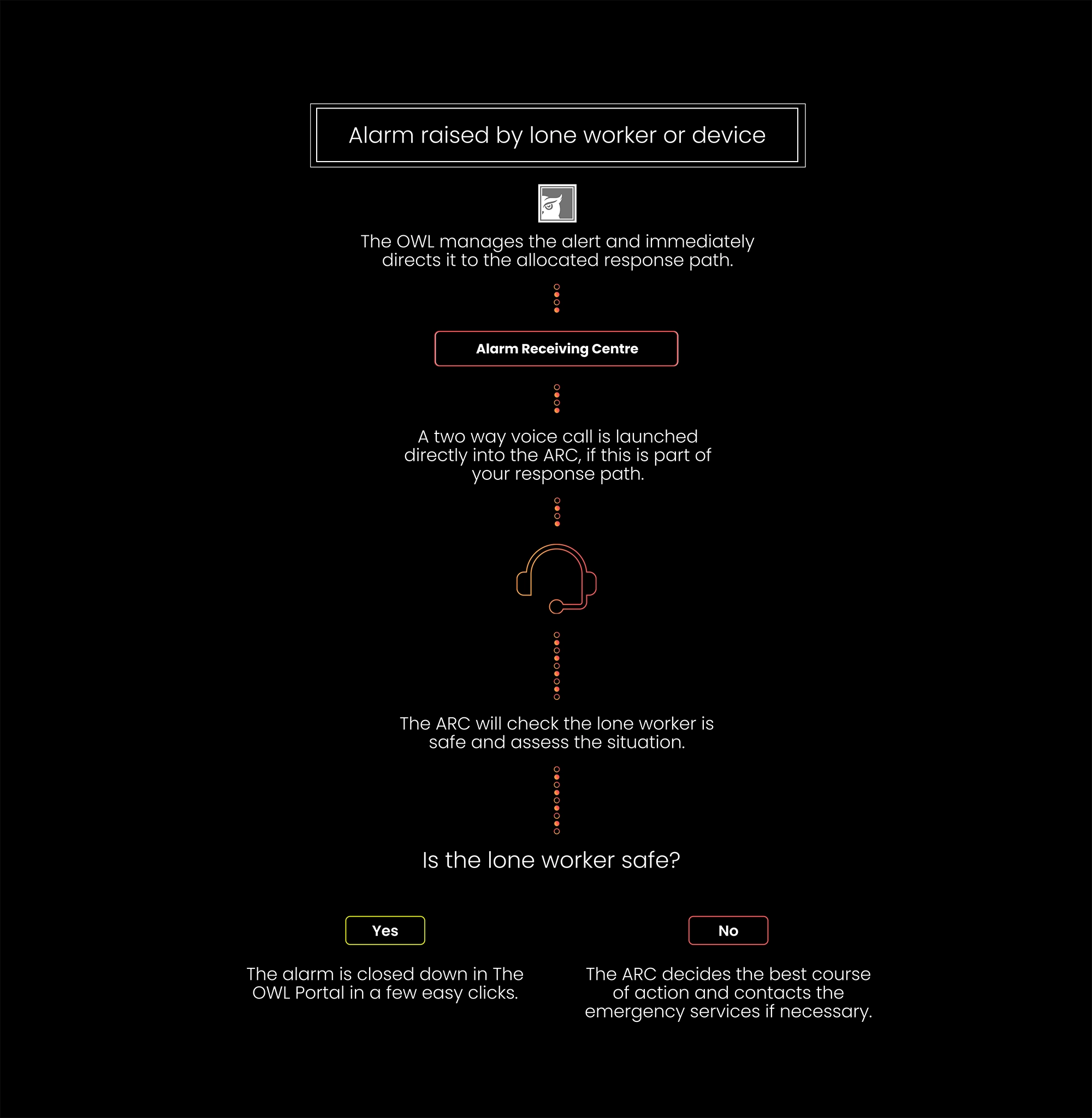 The OWL Portal provides instant access to key functionality to manage the service. Connecting lone worker via devices to management and response.